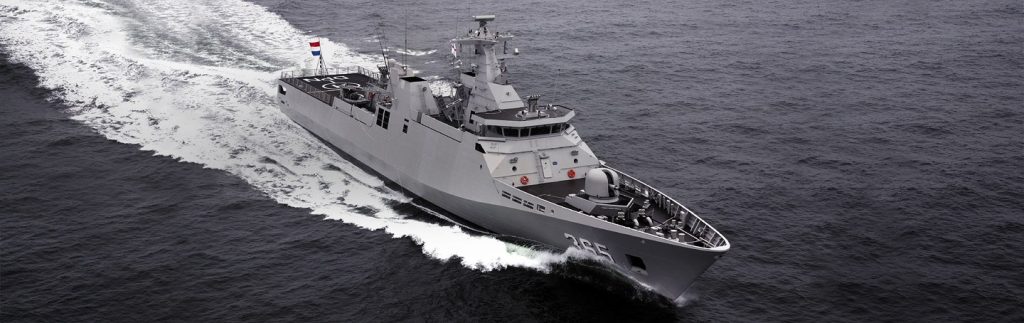 Our partner Damen Shipyards Group, together with the Dutch naval building cluster, has worked on Air Defence and Command Frigates (ADCF), Sigma frigates and corvettes, Offshore Patrol Vessels, Landing Platform Docks, Joint Support Ships, logistic support vessels and hydrographic vessels. Each of these ships are equipped with rudders designed to withstand extreme shocks and improve the vessels’ hydrodynamic properties.