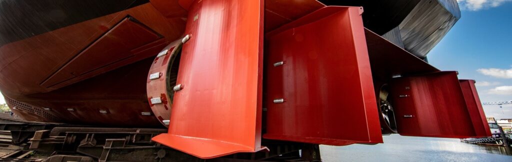 Rudders come in many shapes and sizes. Inland rudders are usually installed in sets of two per propeller. Did you know inland rudder configurations go up to 8 rudders per vessel? While with seagoing ships, it is most common to apply one big rudder.
