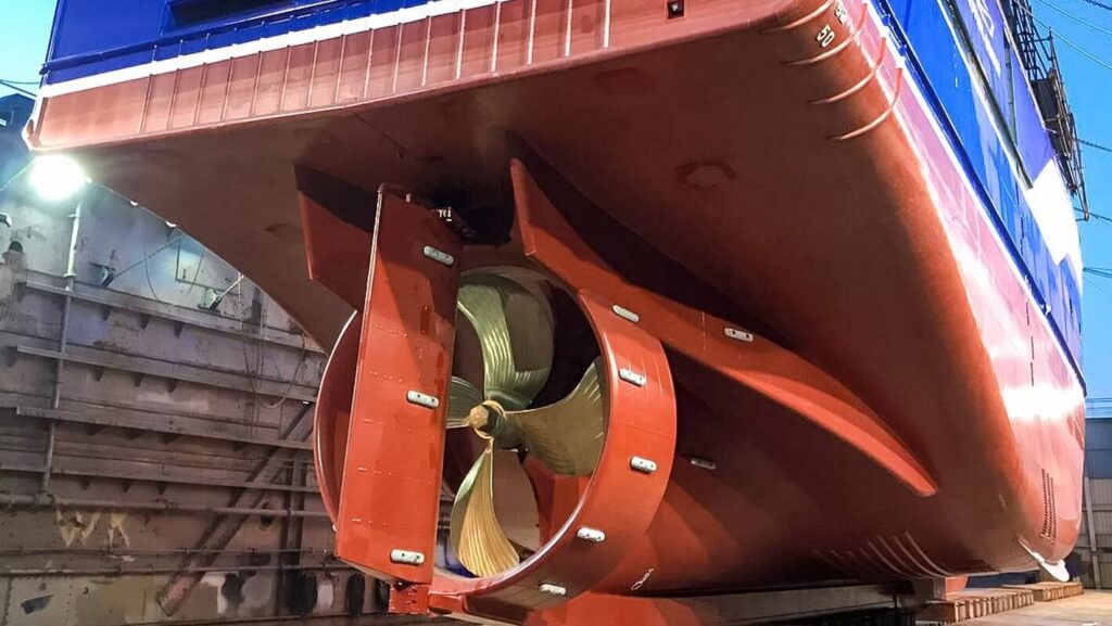 The clearances of the rudders were measured, and the condition of the rudder stocks were thoroughly checked, which were all in a perfect state. To ensure the performance of the rudders, the sealing and linkage system of both rudder blades were overhauled. After that, both rudders were mounted back, and a swing test was performed to make sure everything was working perfectly. The video shows the swing test of one of the rudders.