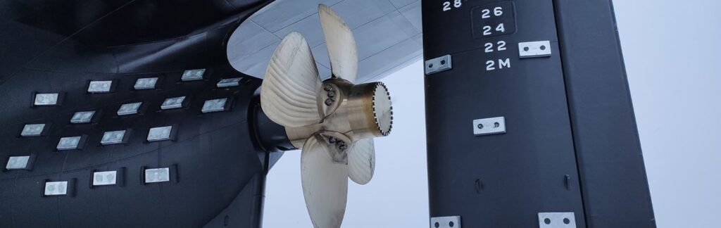 Here we have a beautiful shot of our Timon rudder, a flap type rudder with an open linkage mechanism and side bar system. With a steering and flap angle of both 45°, it allows for a 90°(!) angle, which greatly enhances the vessel’s manoeuvrability. The rudder was installed in a fishing vessel (58 x 13) and will be able to hold approximately 600 m3 of fish.